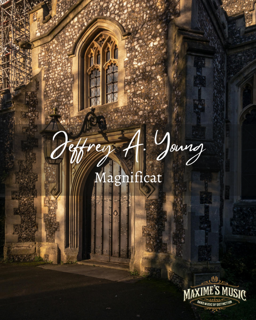 This single-movement, sacred work for Chorus and Wind Band, uses Mary’s hymn glorifying god as a text and creative launch point. Using word painting throughout to illuminate the text, Magnificat contains stylist ideas borrowed from Italian Opera and Renaissance music to express Mary’s feelings when John The Baptist leaps in Elizabeth’s womb. Considered one of the eight most ancient Christians hymns and the earliest of what is known as the Marian hymns, the text is in Latin and is taken from the Gospel of Luke.